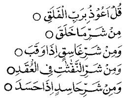 setelah membaca surat Al-Ikhlas 3x seperti bacaan disamping maka dilanjutkan dengan membaca surat Al-Falaq